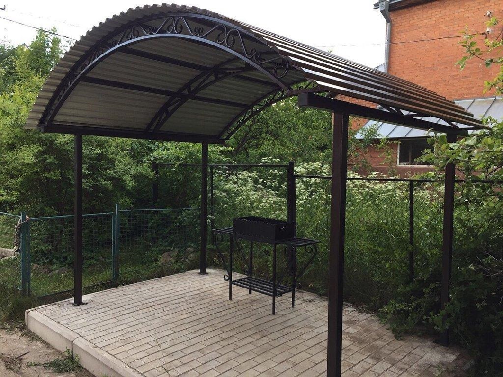 За день на даче изготовили арочный навес 5 на 7 с покрытием поликарбоната. Привезли уже готовые крашенные фермы и весь остальной материал. Все за собой убрали и увезли мусор. Молодцы!