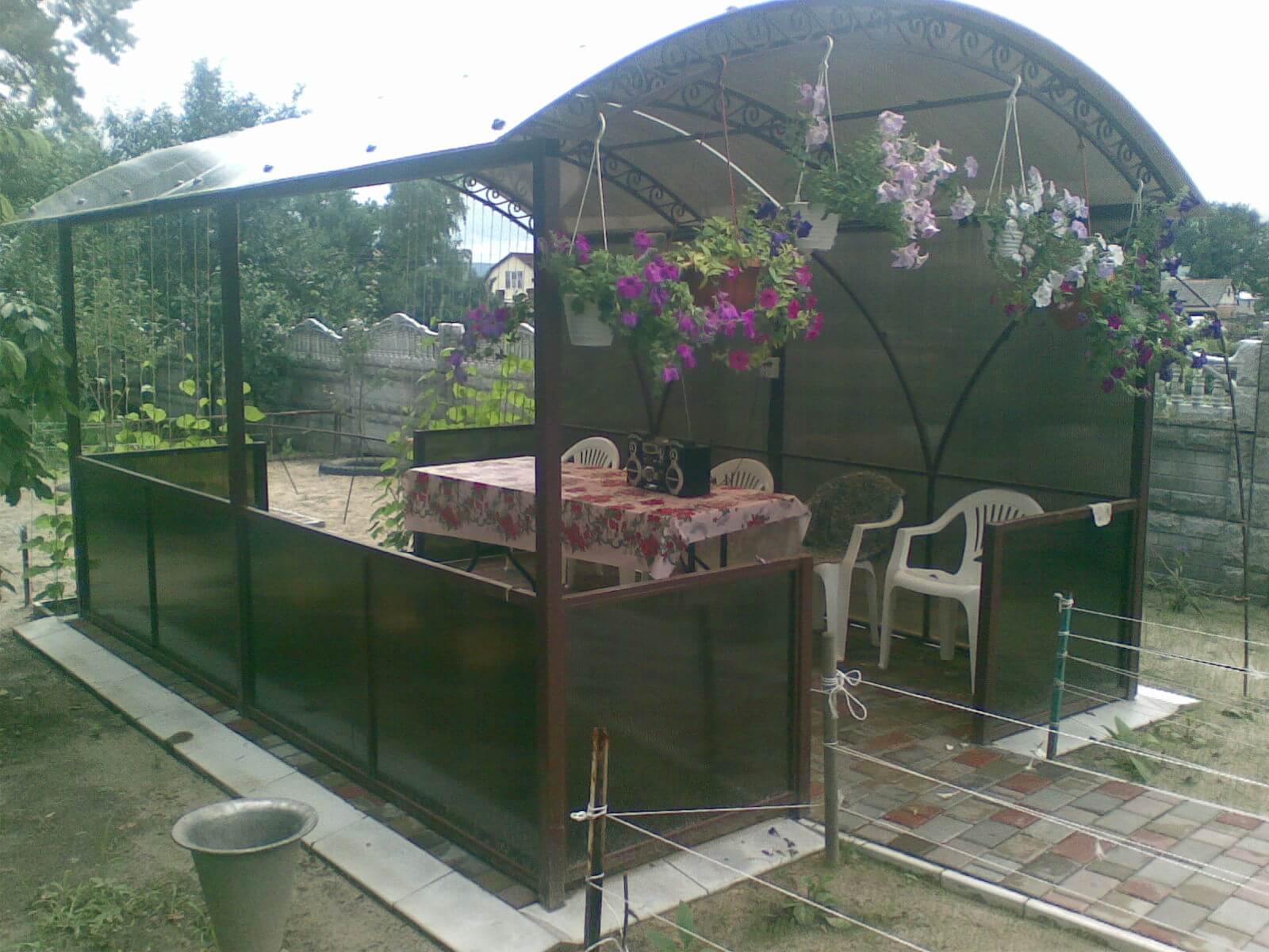 Поэтому компания "Навес Строй" настоятельно рекомендует не экономить, а усилить каркас навеса для беседки более жёсткими профилями с увеличенной толщиной металла и количеством несущих ферм.