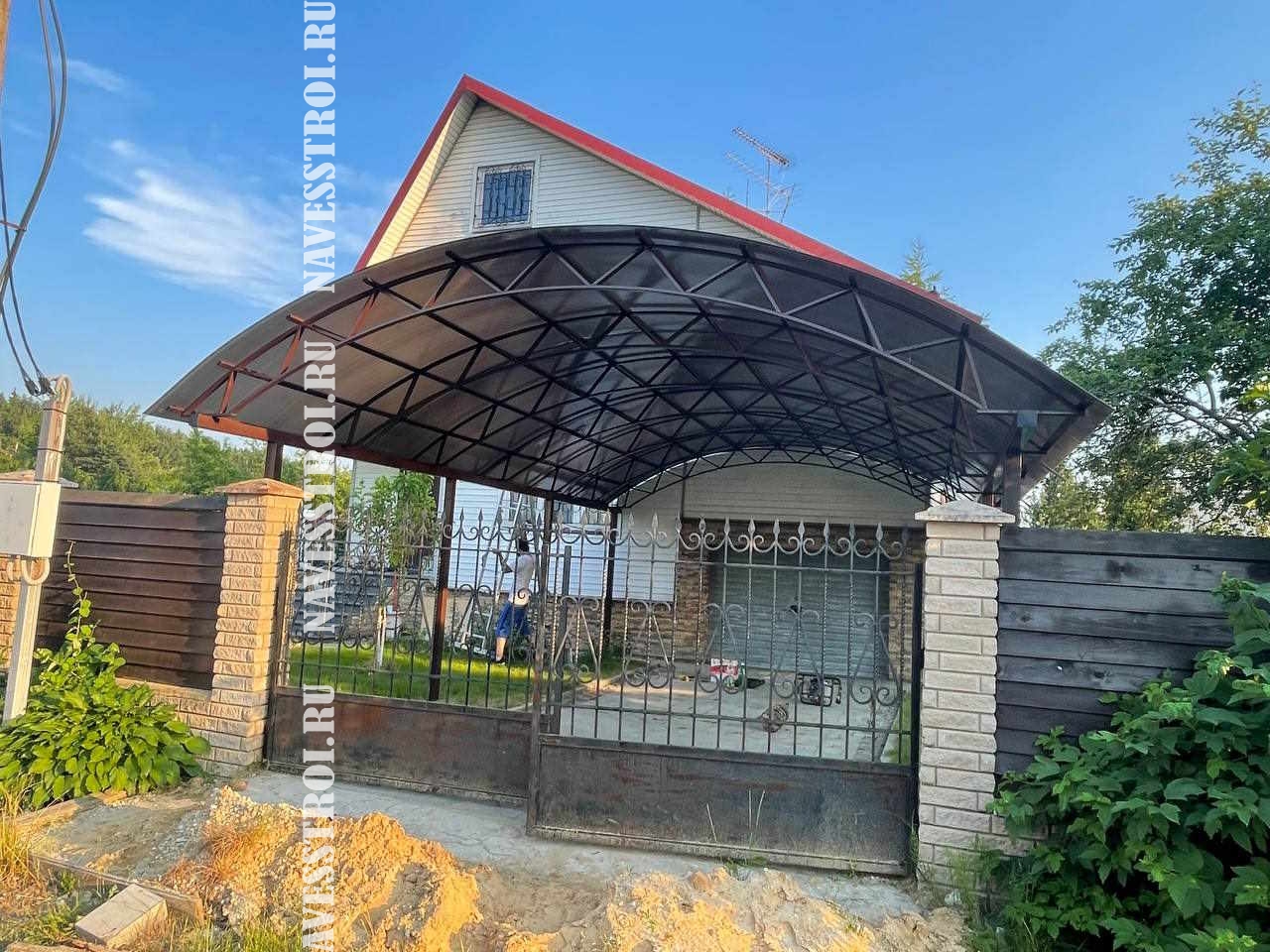 За день на даче изготовили арочный навес 5 на 7 с покрытием поликарбоната. Привезли уже готовые крашенные фермы и весь остальной материал. Все за собой убрали и увезли мусор. Молодцы!