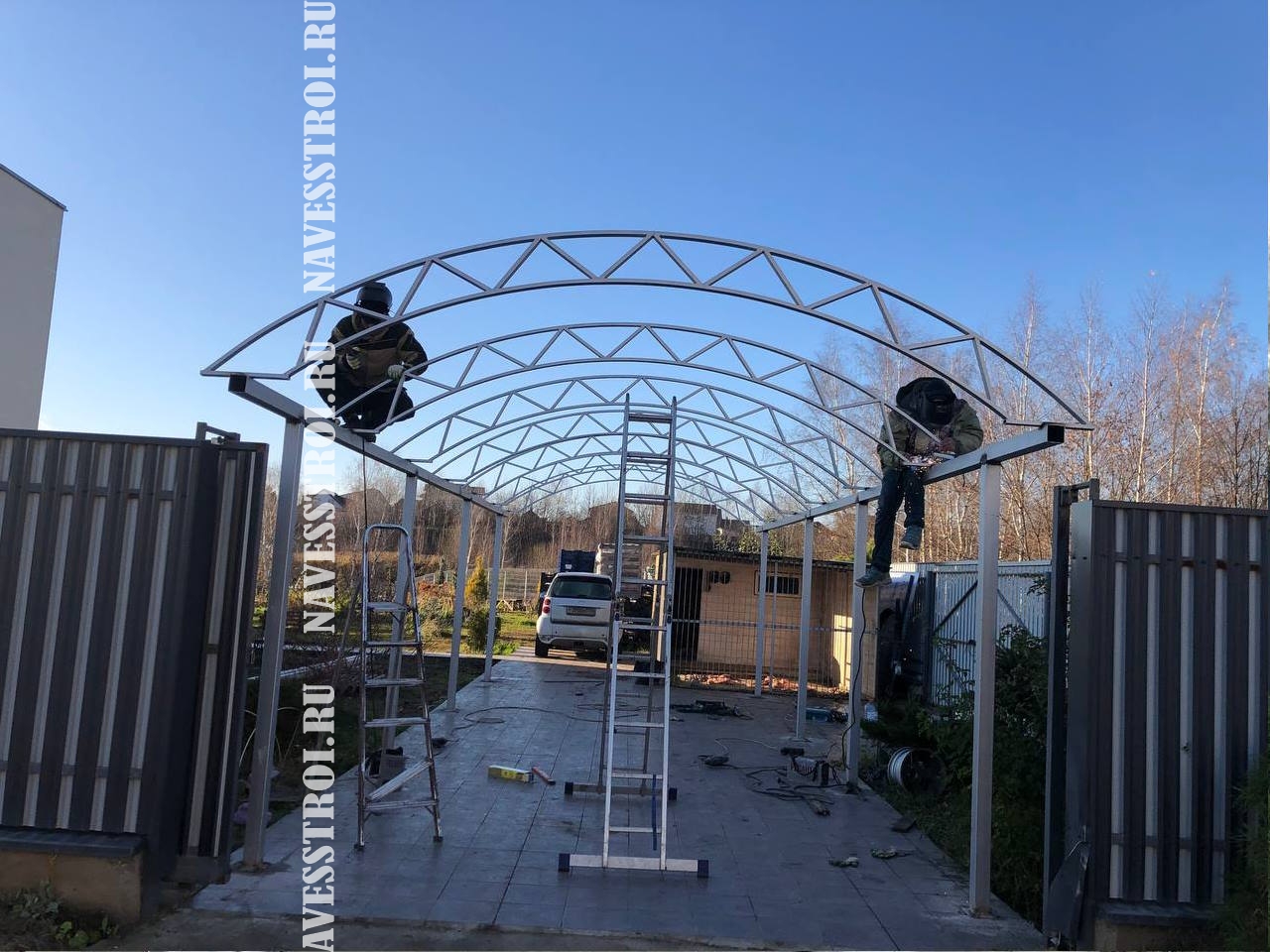 За день на даче изготовили арочный навес 5 на 7 с покрытием поликарбоната. Привезли уже готовые крашенные фермы и весь остальной материал. Все за собой убрали и увезли мусор. Молодцы!