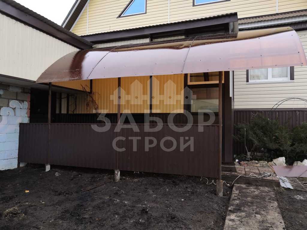 Поэтому компания "Навес Строй" настоятельно рекомендует не экономить, а усилить каркас навеса над крыльцом более жёсткими профилями с увеличенной толщиной металла и количеством несущих ферм.