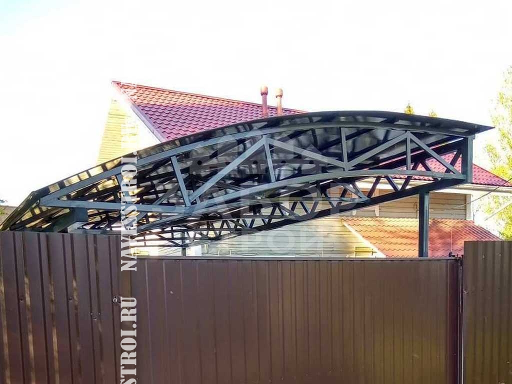 За день на даче изготовили арочный навес 5 на 7 с покрытием поликарбоната. Привезли уже готовые крашенные фермы и весь остальной материал. Все за собой убрали и увезли мусор. Молодцы!